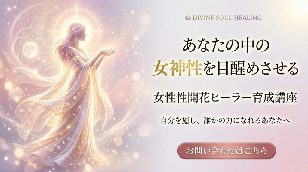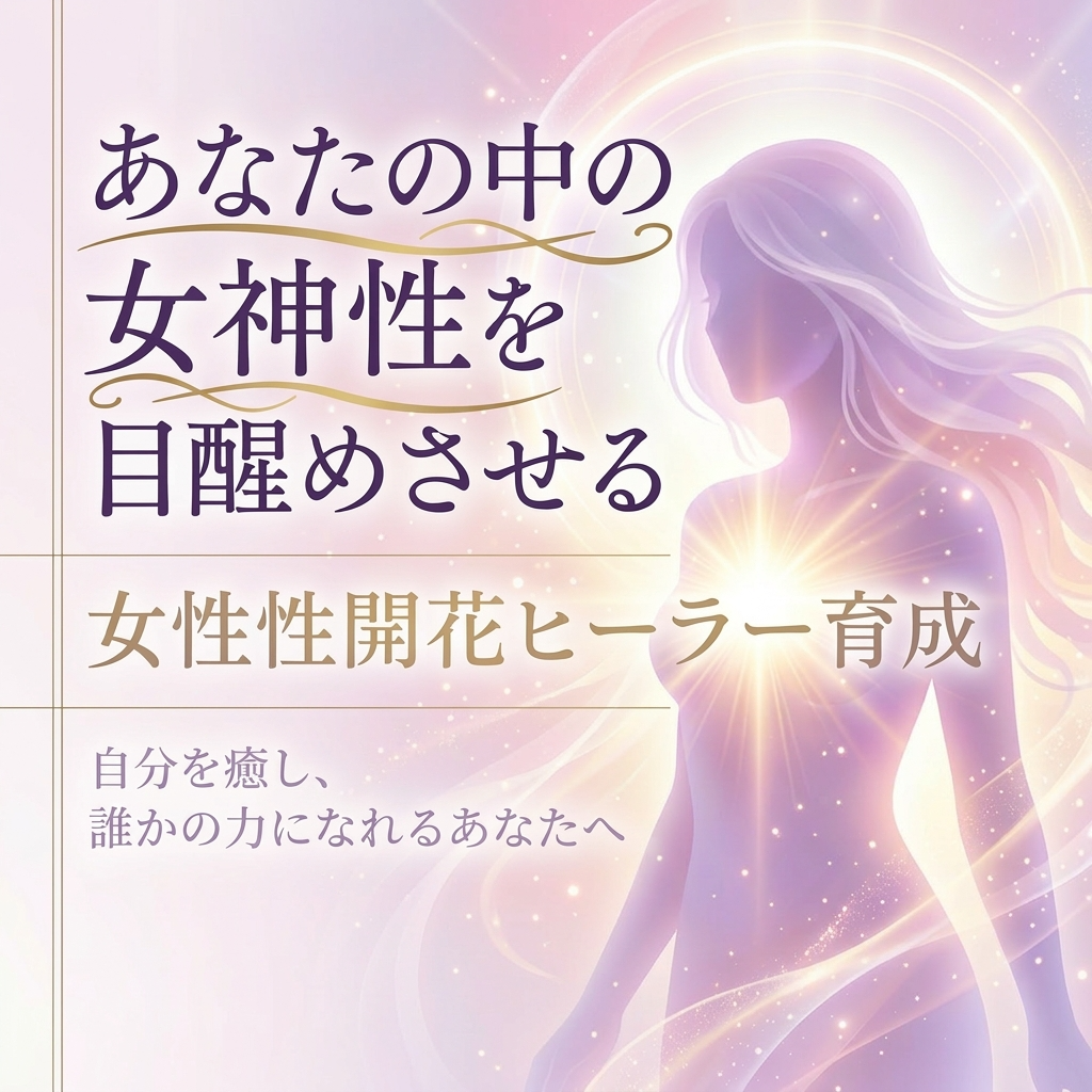 「女性性・女神性開花ヒーラー育成」は、目醒めや覚醒、ヒーリングアクティベーションを学びながら、自分自身の内側を整え、さらに大切な方へも届けていくことを目指した育成メニューです。